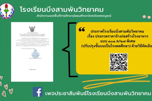 ประกาศโรงเรียนบึงสามพันวิทยาคม เรื่อง ประกวดราคาจ้างก่อสร้างอาคารโรงฝึกงาน 102/27 ด้วยวิธีประกวดราคาอิเล็กทรอนิกส์ (e-bidding)