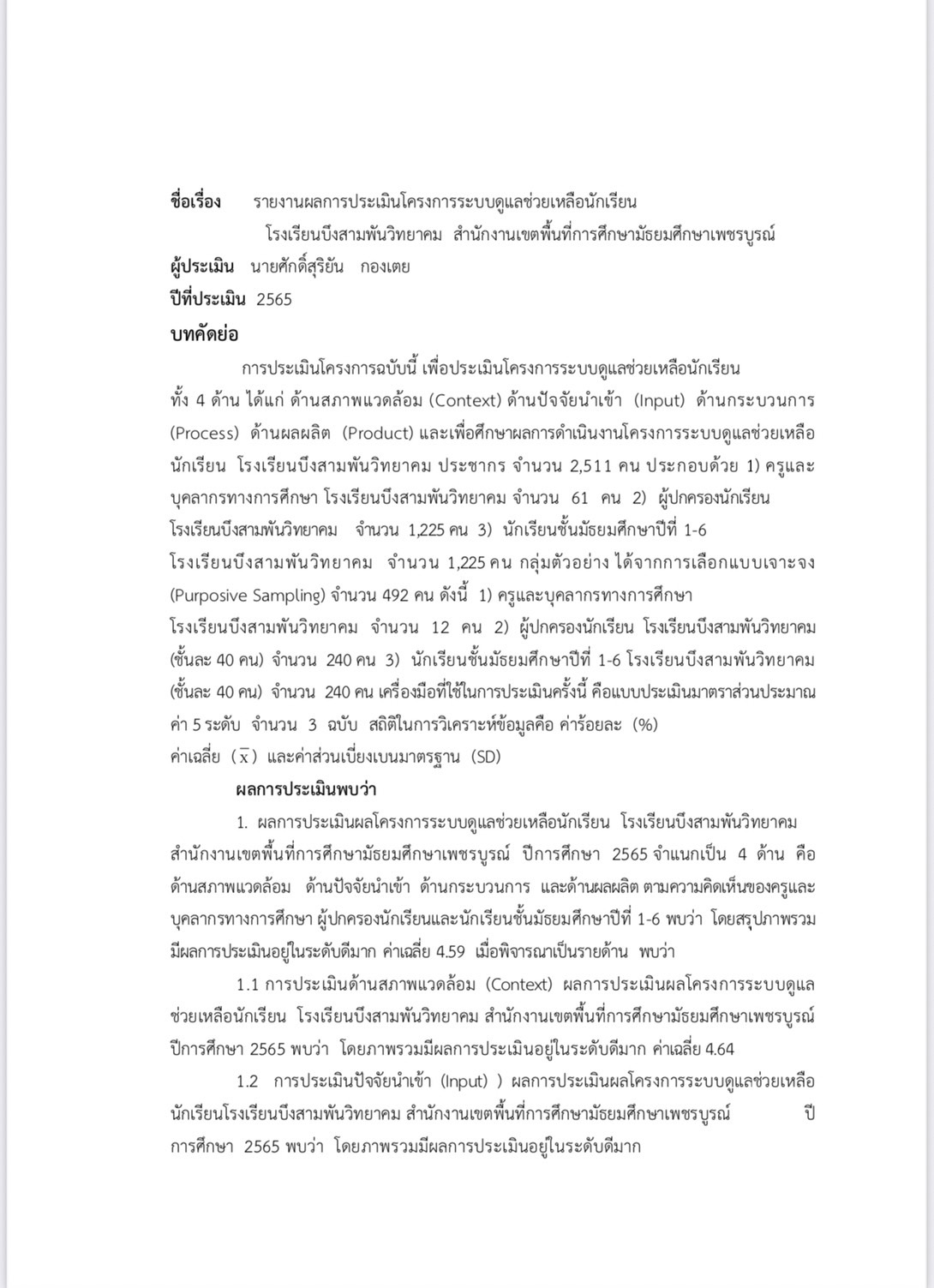 เผยแพร่ผลงานวิชาการ เรื่อง รายงานผลการประเมินโครงการระบบดูแลช่วยเหลือนักเรียน