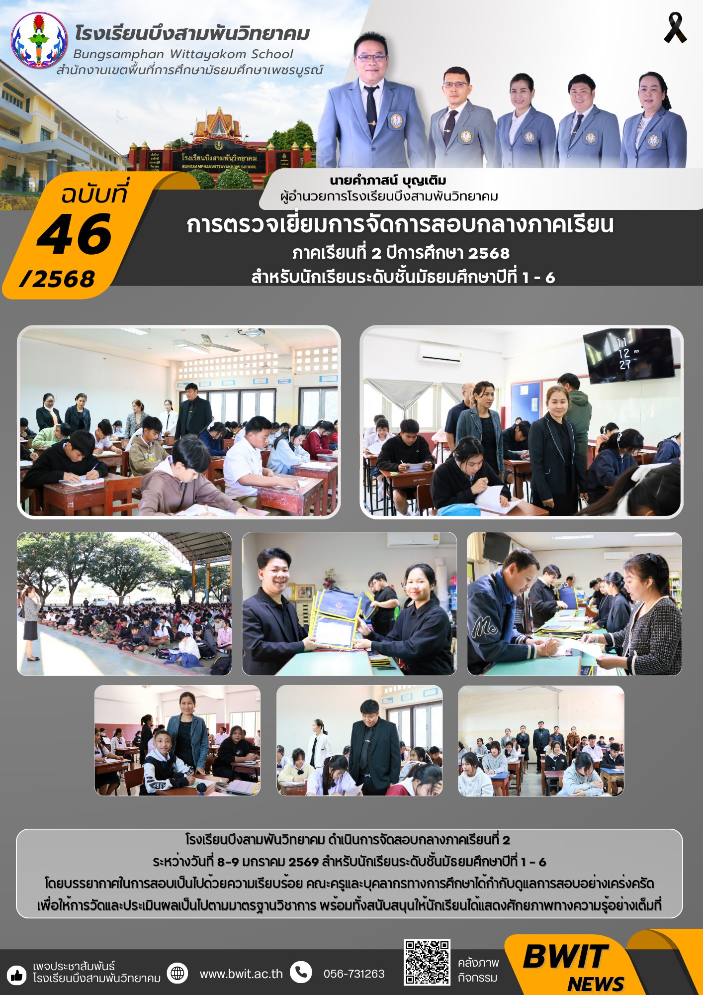 โรงเรียนบึงสามพันวิทยาคม ดำเนินการจัดสอบกลางภาคเรียนที่ 2 ระหว่างวันที่ 8-9 มกราคม 2569 สำหรับนักเรียนระดับชั้นมัธยมศึกษาปีที่ 1 - 6