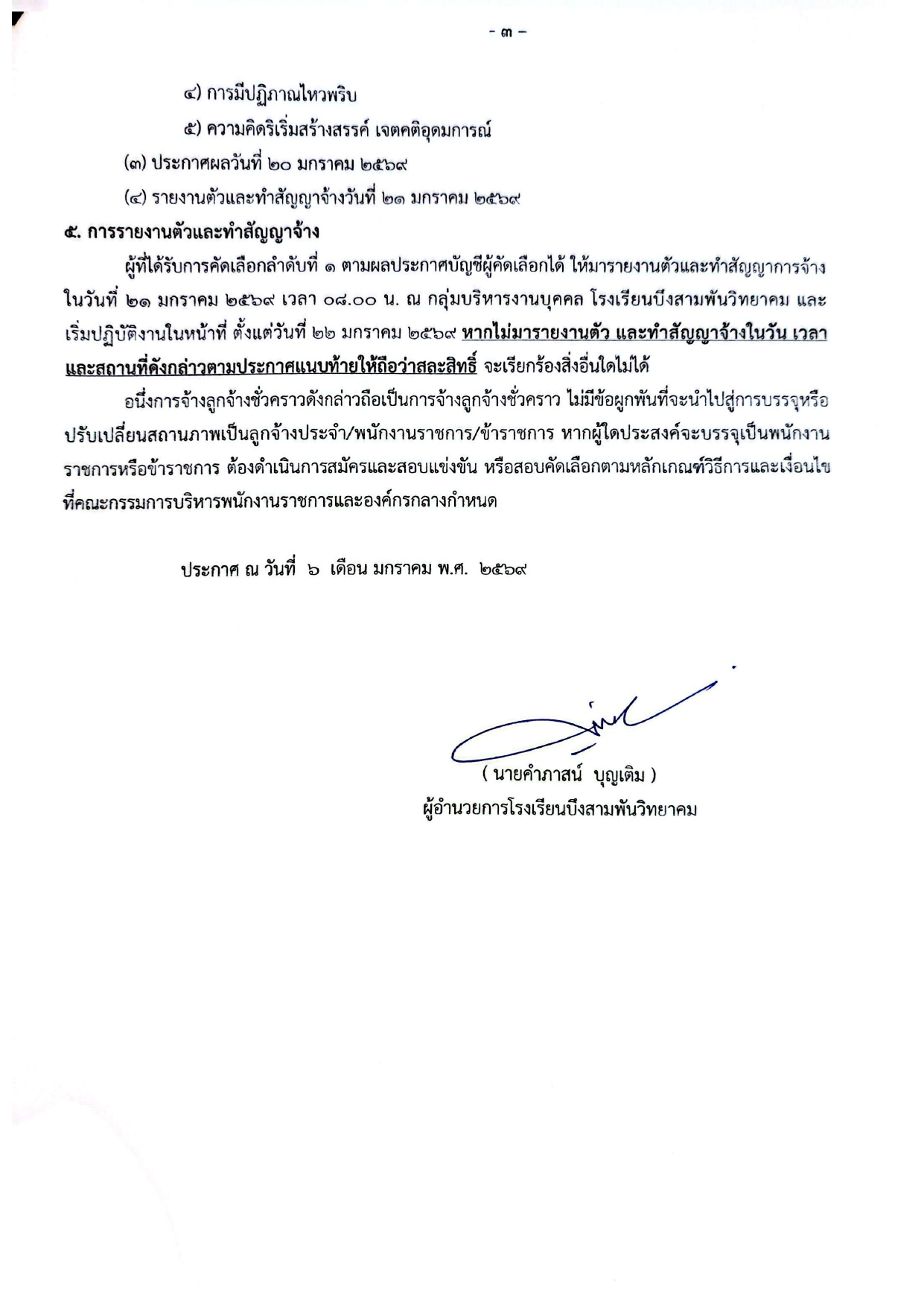 ประกาศโรงเรียนบึงสามพันวิทยาคม